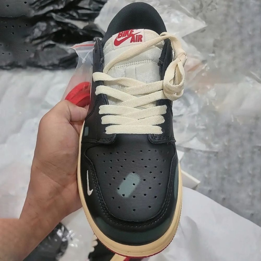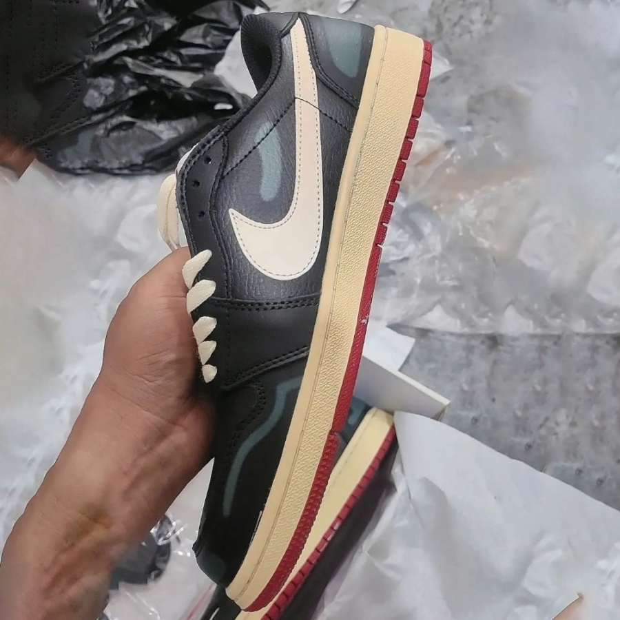The Air Jordan 1 Retro Low OG x Nigel Sylvester Nitro (or Better With Time) reimagines the AJ1 with a lived-in aesthetic, featuring pre-scuffed black and muslin leather, a vintage cream Swoosh, and a Varsity Red outsole. Signature details include mismatched laces, “Bike Air” branding, and the removal of the lateral Swoosh and Wings logo, reflecting Sylvester’s BMX roots and his philosophy that great things only get better with time.